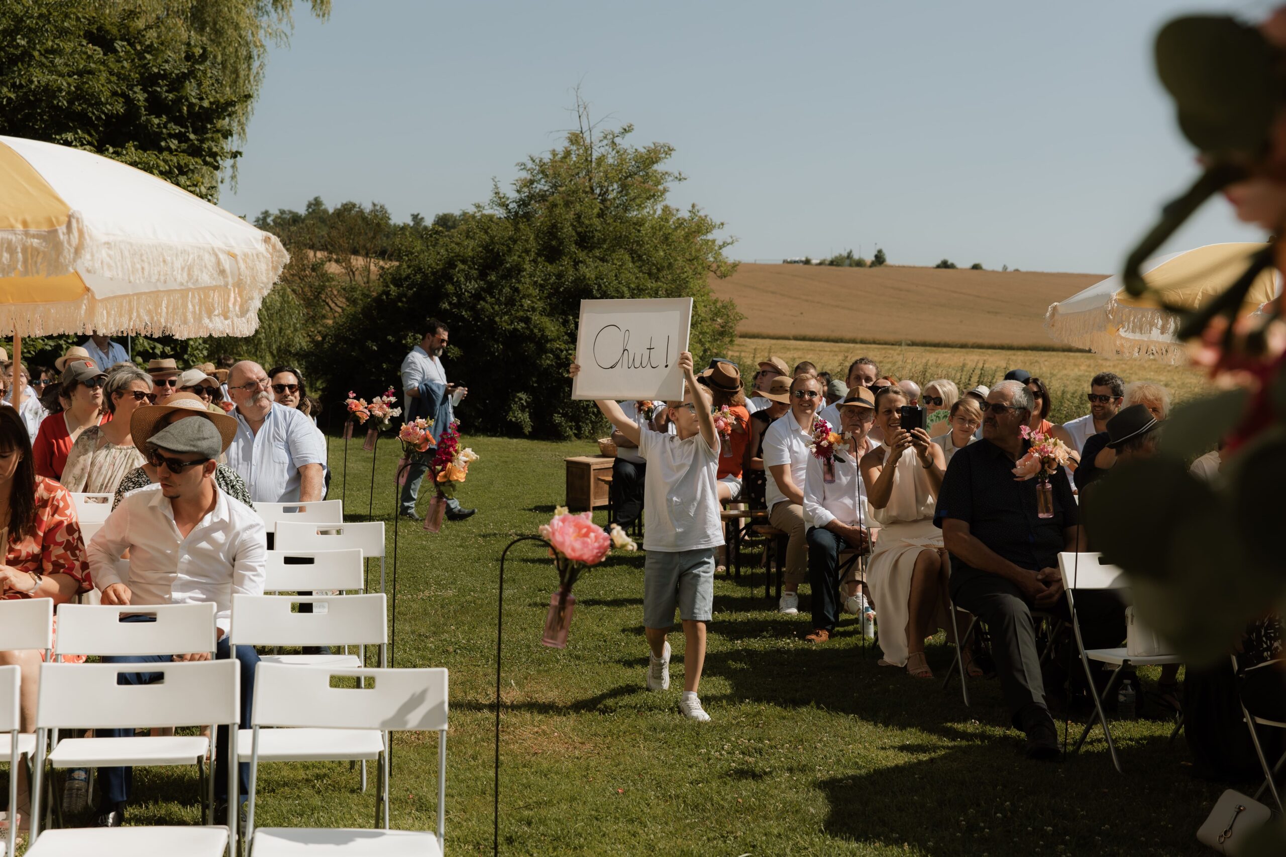 Le lendemain je les ai retrouvé dès le matin pour leurs préparatifs et ils ont continué avec leur cérémonie civile. Le moment où je dois l’avouer j’ai lâché quelques larmes.. La cérémonie a été réalisé par les deux soeurs d’Ugo et la petite soeur de Mathilde : à fond dans l’émotion !
