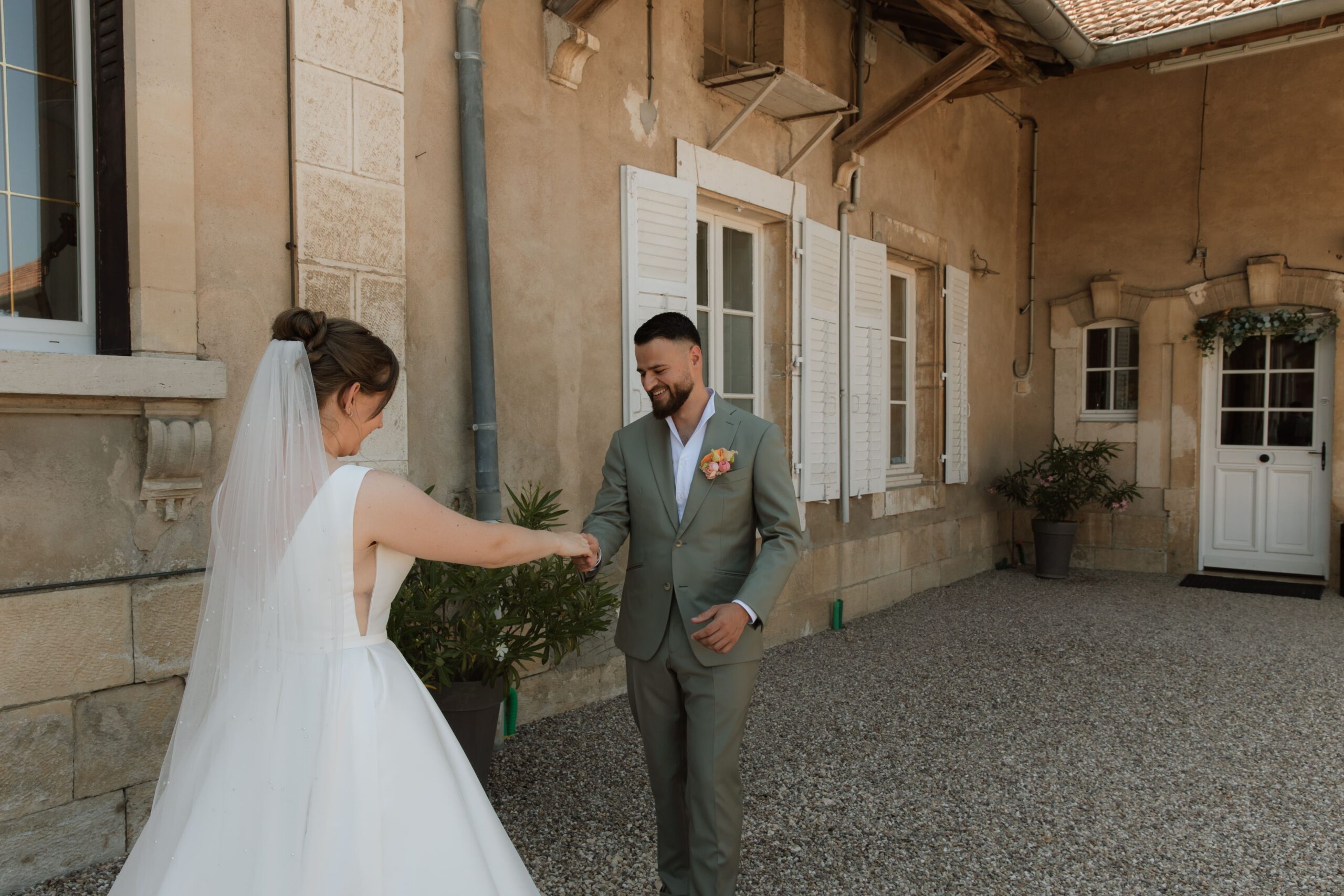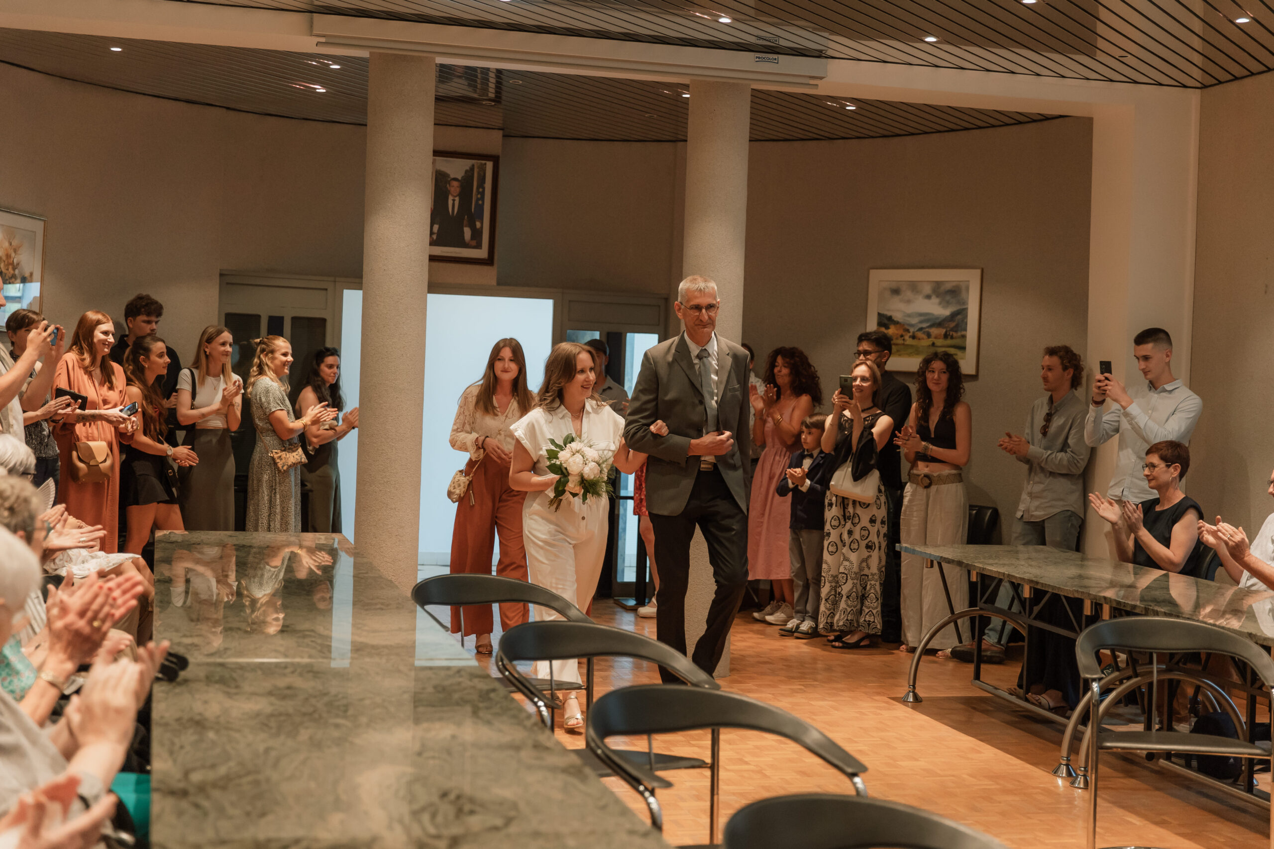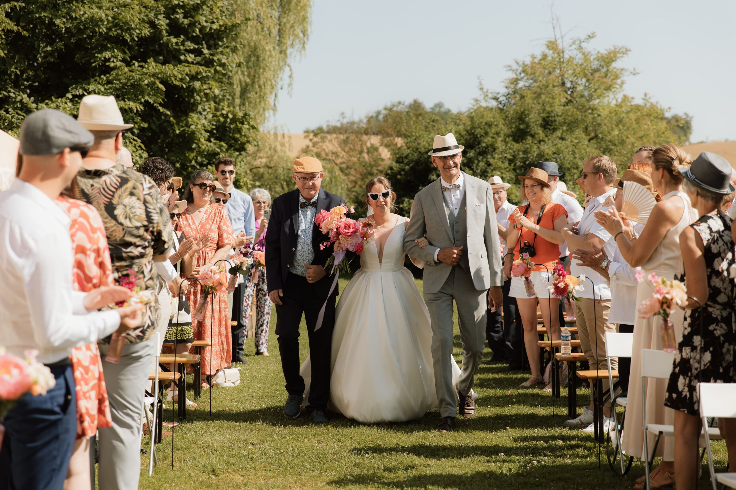 Ils ont réalisé leur mariage en 2 jours, leur mariage civil le vendredi 20 juin au soir et une belle cérémonie civile le 21 juin avec encore plus de proches. Un moment unique lors du mariage civil puisque c’est le papa d’Ugo, maire, et la maman de Mathilde, élue, qui ont procédé au mariage et ont rajouté un vrai côté intime en partageant des objets et des souvenirs de leurs enfances respectifs.